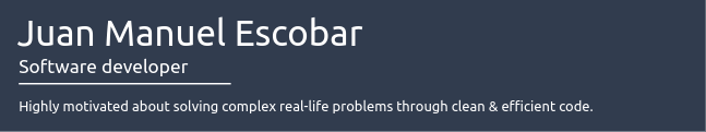 Hey! I'm Juan (he/him) passionate about programming and tech in general, developing professional software solutions since I'm 18 years old.