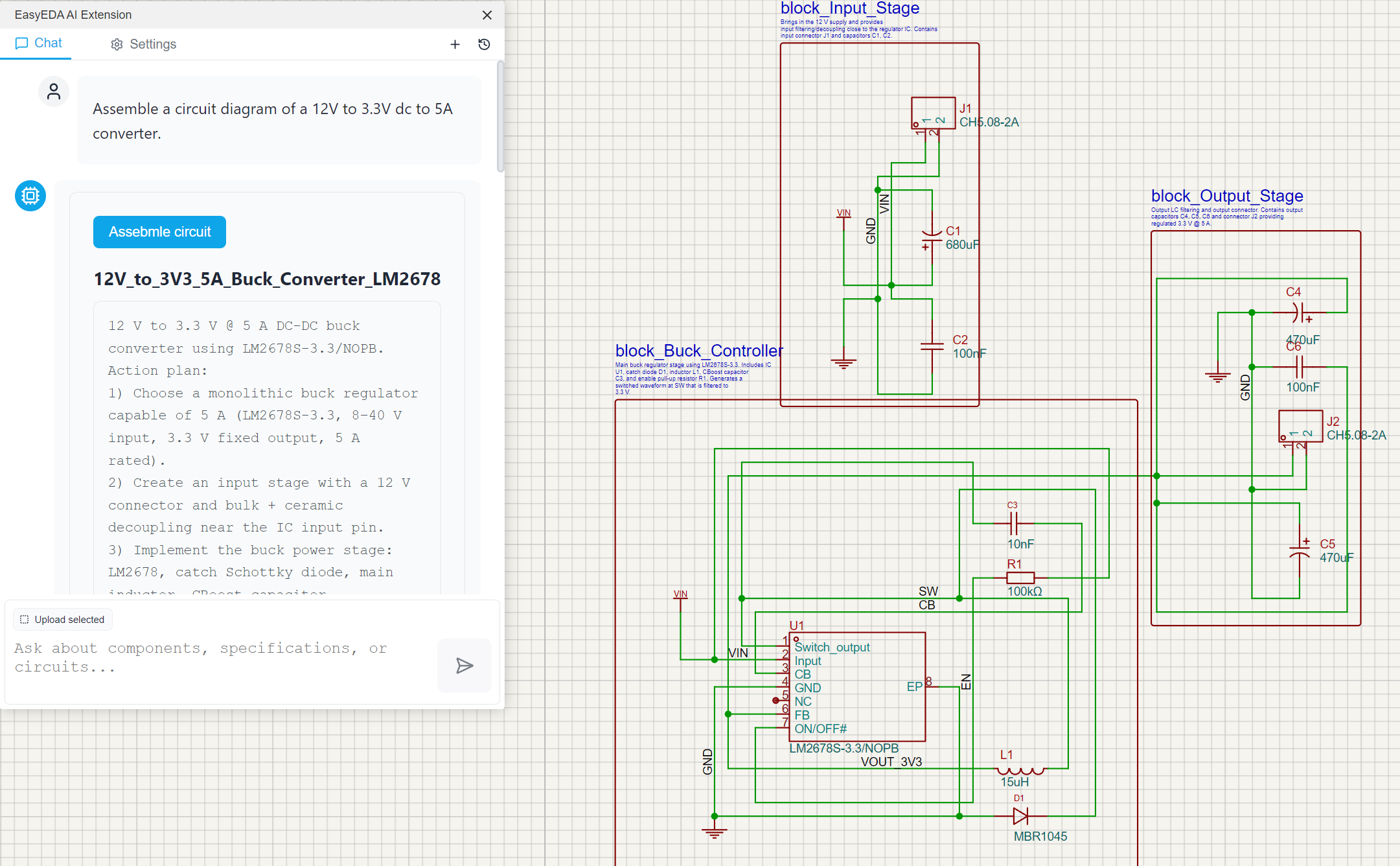 - The AI will generate a schematic based on your description