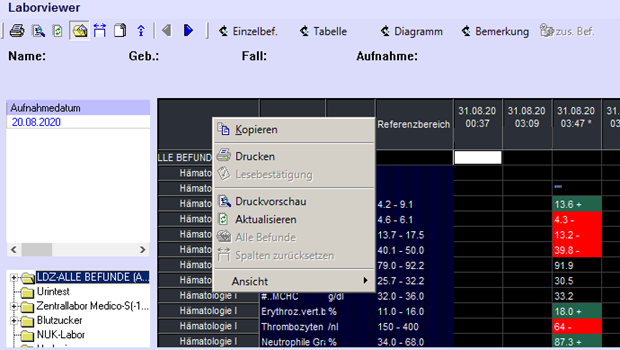 Simply copy the selection out of the medico laboratory viewer(works for cummulative and single data entries):