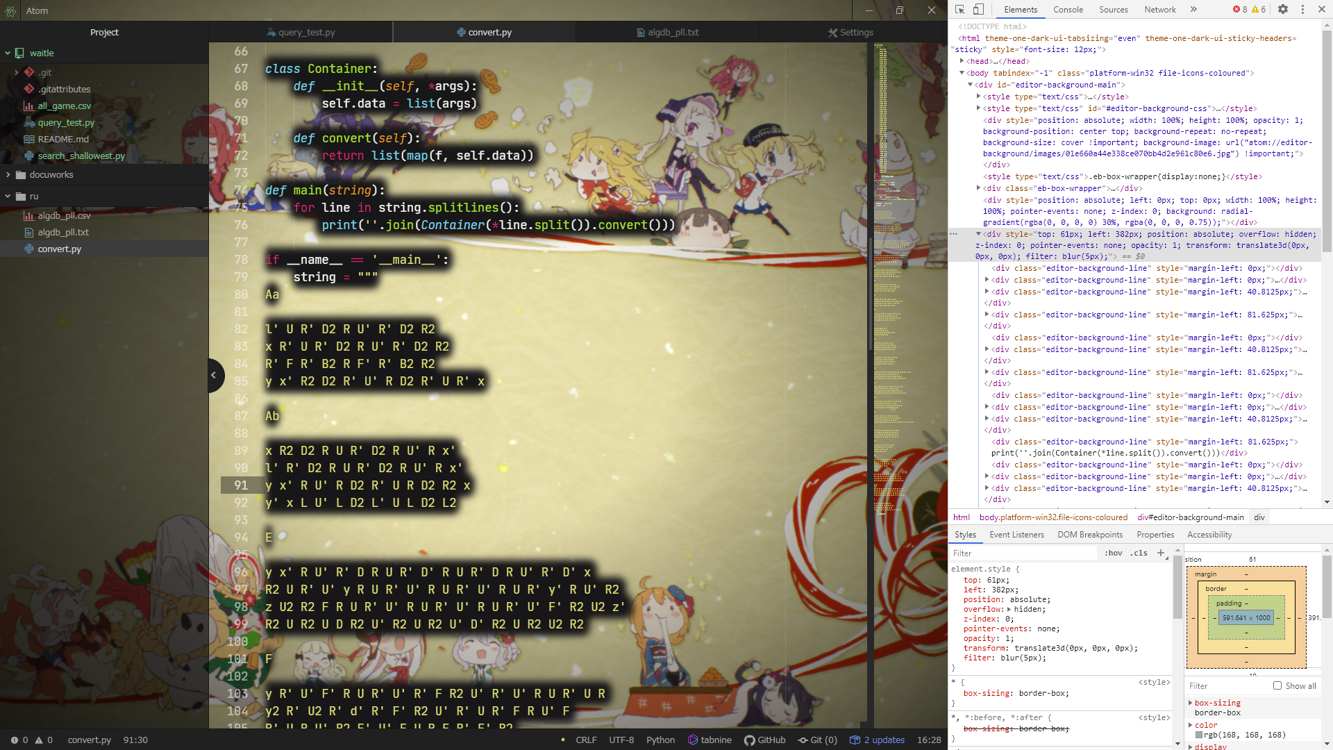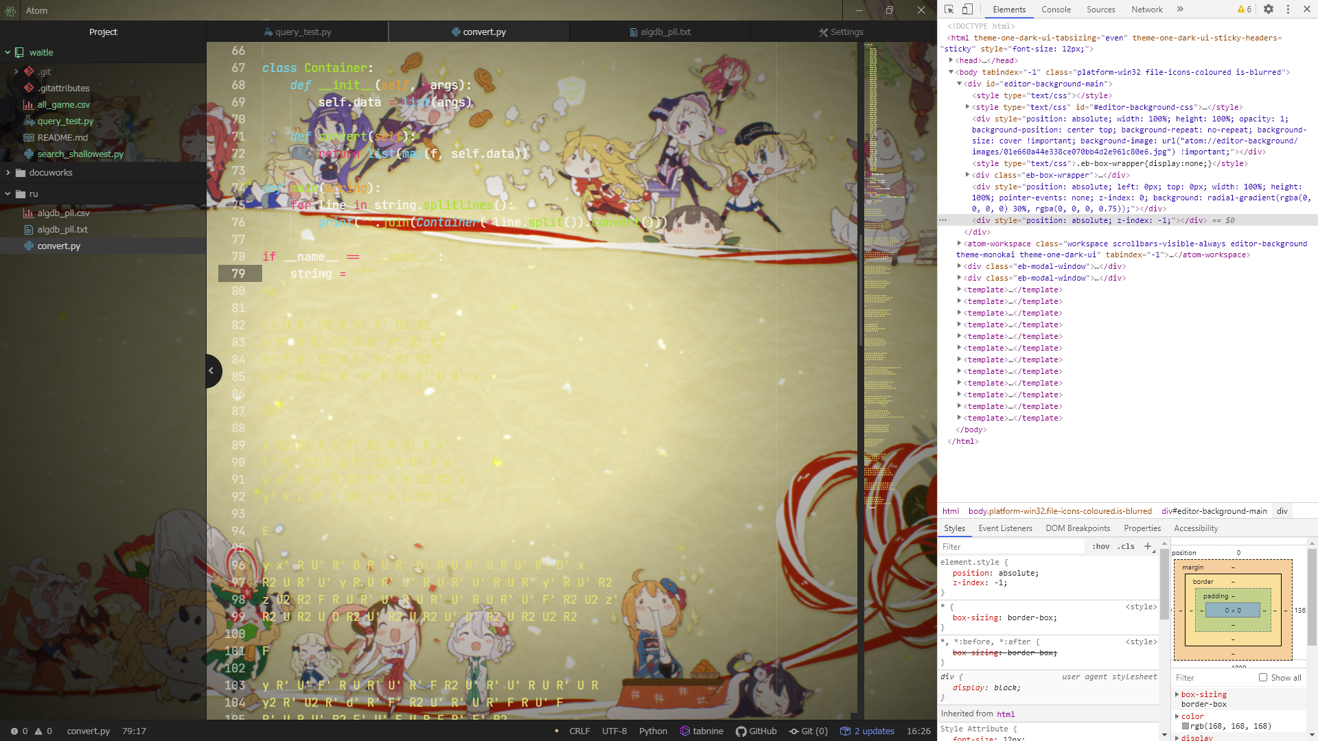 editor-background-main, which I guess corresponds to@elements.textBackgroundand is expected to contain<div class="editor-background-line">, has gone empty on v.1.60.0. But I am so new to CoffeeScript that don't know where and how to fix.I would appreciate your advice.