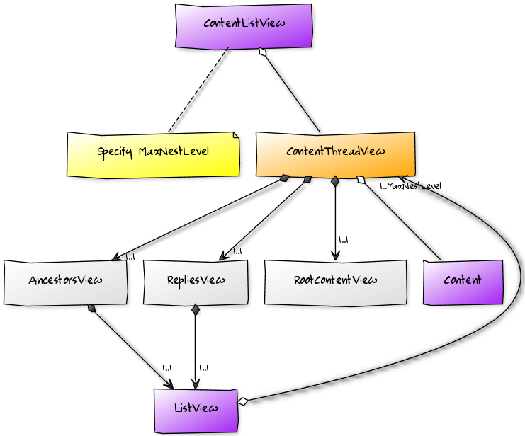 Construct a ContentThreadView with the root Content item. The content options is required.