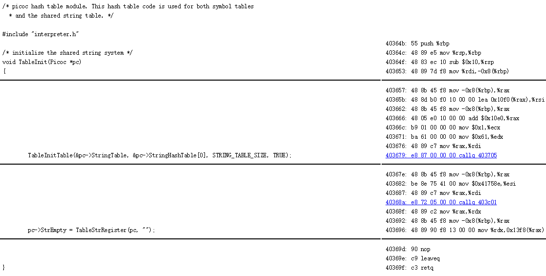 - [X] Convert the source code to HTML, with side-by-side assembly and source, and with embedded branch-target links.