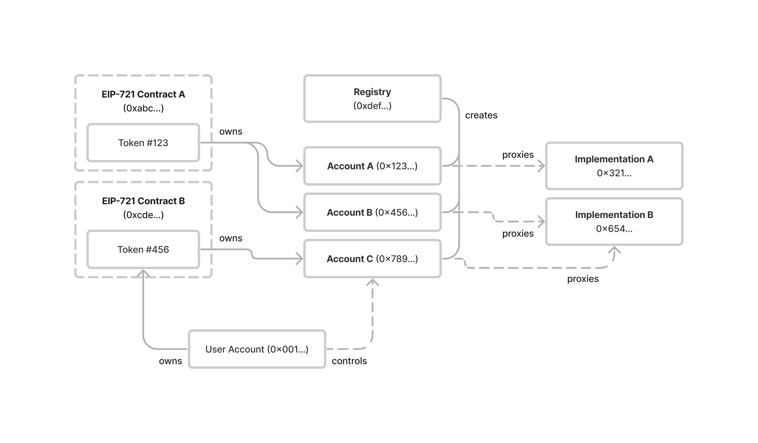 These accounts are referred to as token bound accounts and they allow NFTs to own assets and interact with applications, without requiring changes to existing smart contracts or infrastructure.