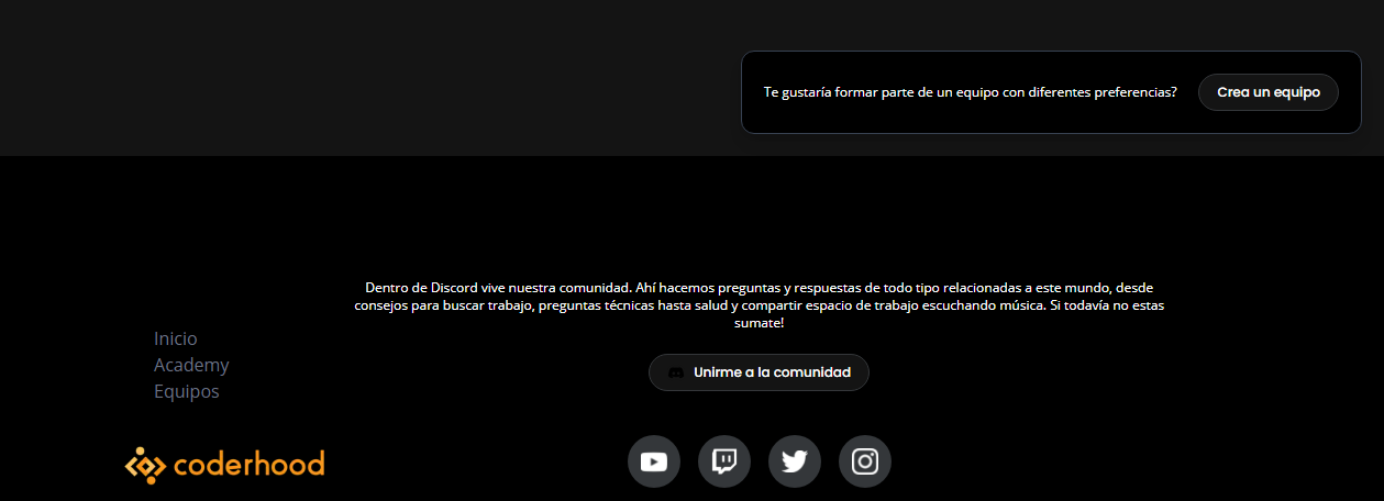 Para crear un nuevo equipo, es necesario recorrer toda la página de equipos, hasta llegar al fondo y poder encontrar el botón. Se podría crear un botón flotante que nos siga de acuerdo a donde estemos ubicados en la página!
