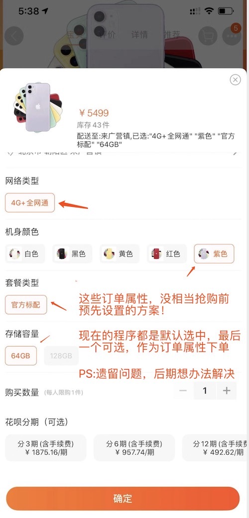 现在软件还无法预设抢单的订单属性功能,默认是选择最后一个可选属性作为下单条件!这是一个遗留问题,后续想办法解决。