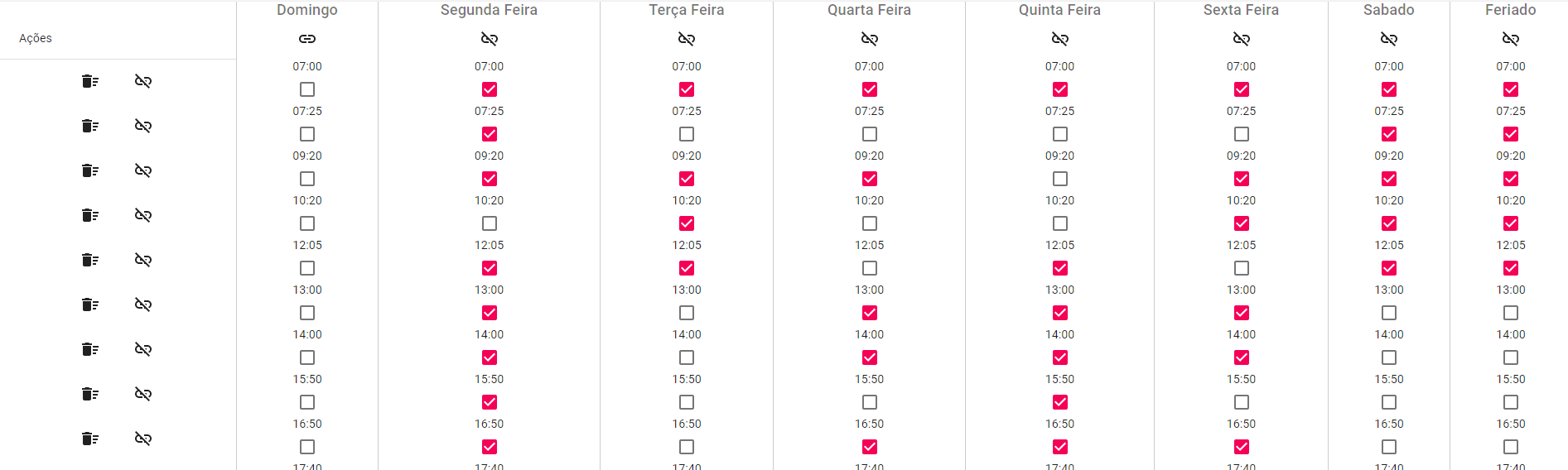 The days of the week are represented by each column of the table, the values being Sunday = 1, Monday = 2, Tuesday = 4, Wednesday = 8 ... From this it is possible to use the bitwise operator to divide this integer, thus extracting the active days of the week.