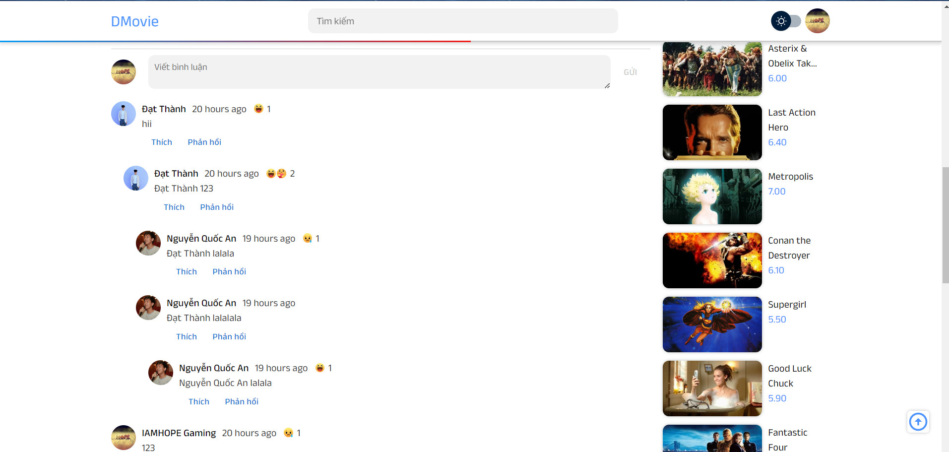 - Comment, rep comment realtime nhiều cấp.