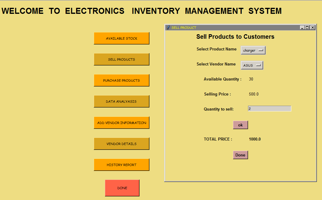 Inventory Management System works as Mediator between Manufacturing companies and Retailers or shopkeepers. This System helps inventory manager to sell , purchase , generate history report , analyse data , keep record of vendors etc.It is software system for tracking inventory levels, orders, sales and deliveries. It makes placing and tracking of orders extremely easy.