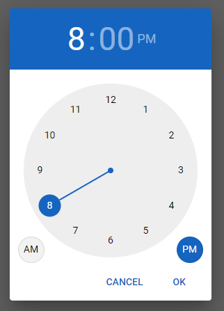 Material design inspired time picker plugin for input elements.