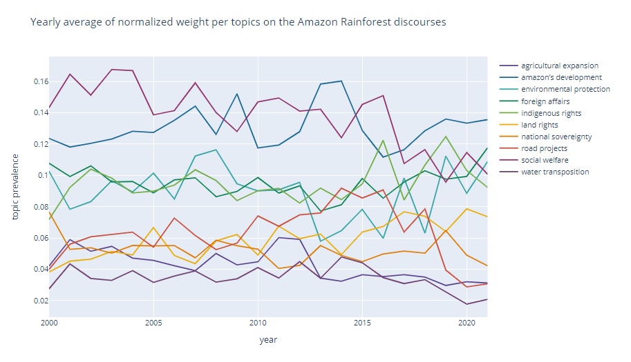 Map of all the parliamentary discourses on Amazon rainforest-related from 2000 to 2021.