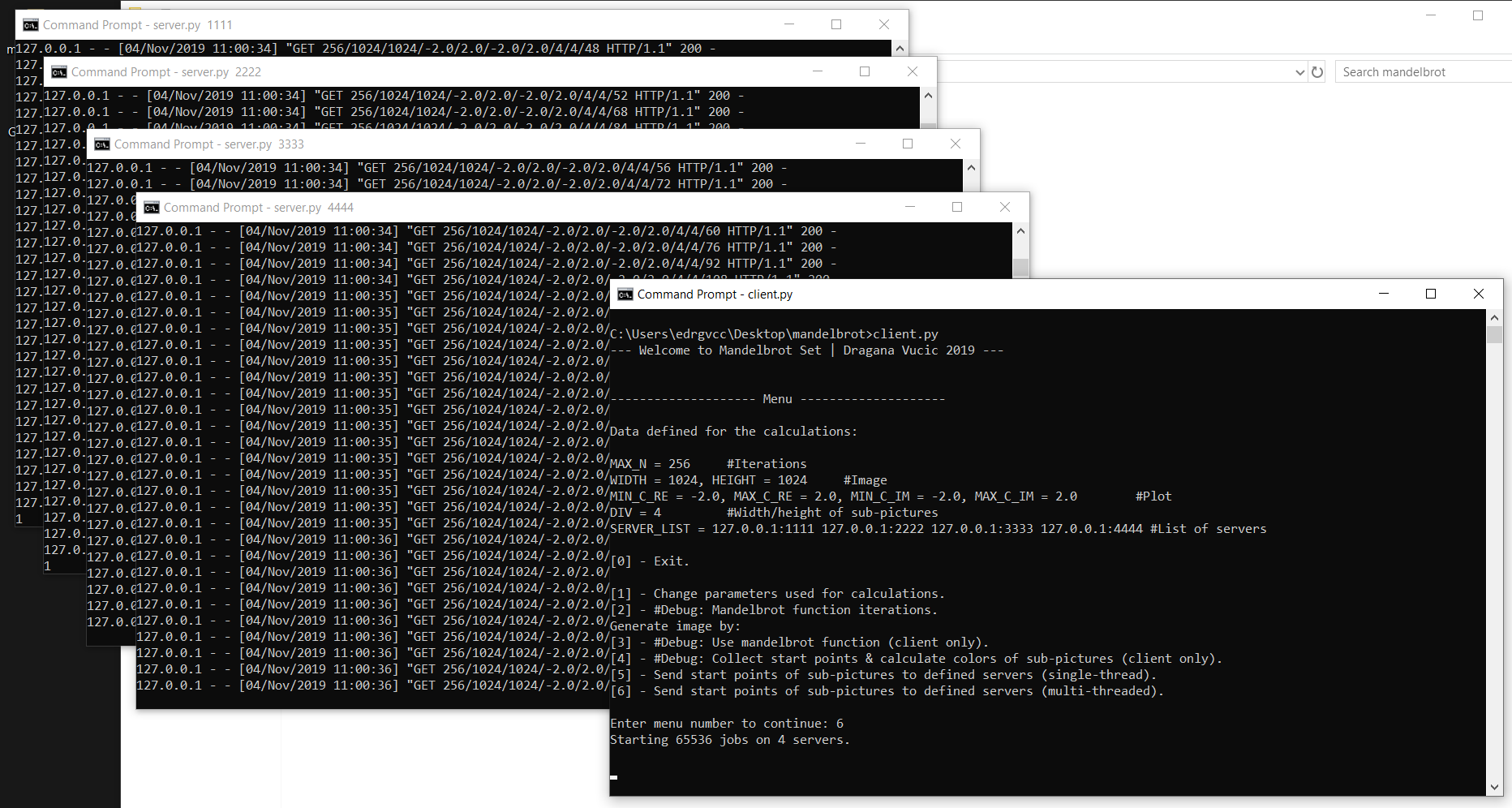 Client/Server python scripts for mandelbrot set calculations.