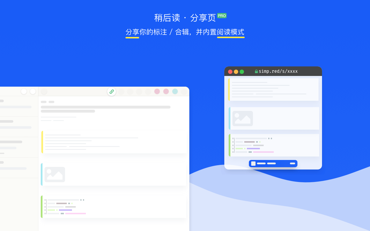 分享页也是简悦 2.0 最重要的功能 之一,你可以将任何稍后读/合辑,以 外链的方式 分享出去,包含:当前页面的标注 以及 内置包含标注高亮 的阅读模式解析。