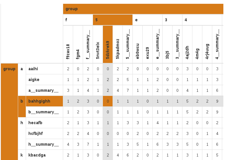 Based on renderer's results, ij.js builds hierarchies on rows and or columns, with associated summarizations of underlying data (displayed with or without underlying data). ##Project structure