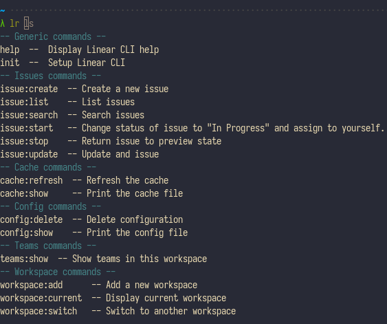 Hello there, first, thank you for making this, the short period of time I worked with Linear was great thanks to this program; unfortunately I had a hard time remembering the commands and because of that I created this very simple, and probably inefficient, autocompletion for ZSH.