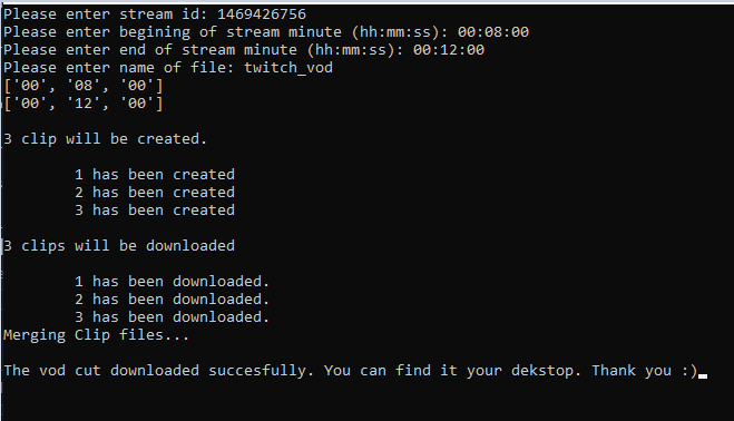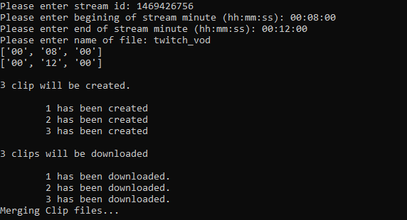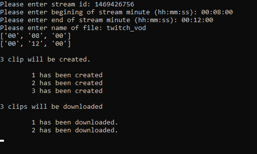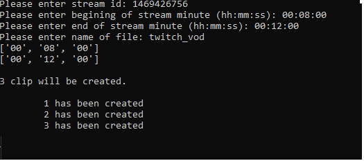 After that you have tu put stream_id, start stream minute by hour:minute:second, end stream minute by hour:minute:second and the name of file that will be named.