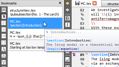 Use bookmarks to keep references to important places in your text and to navigate there quickly.