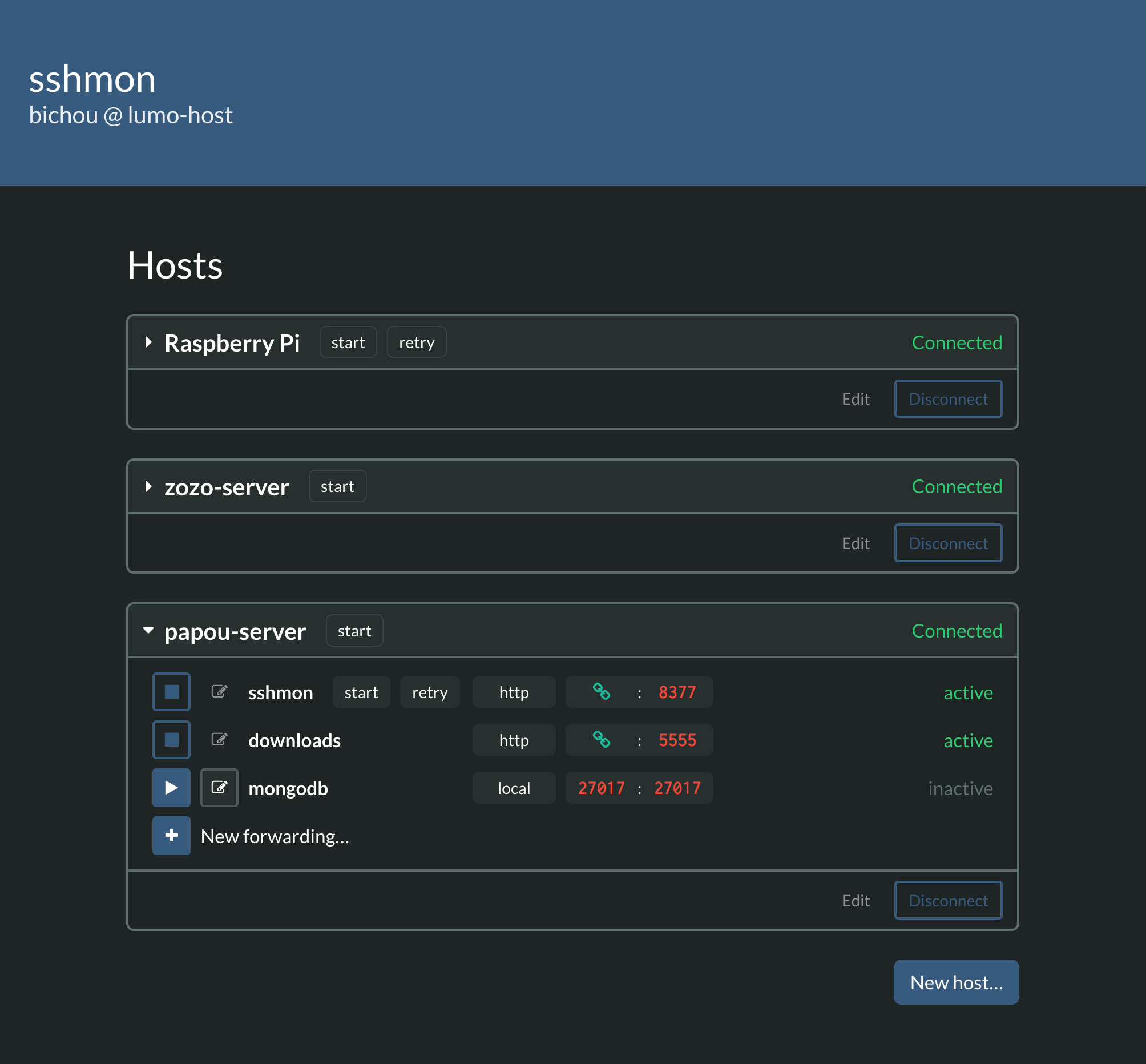 - SSH port/socket forwarding management