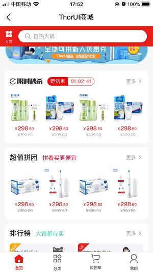 3.新增卡片轮播:包含顶部轮播,秒杀商品轮播等。