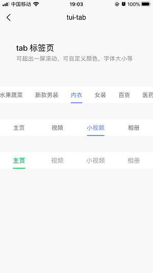 6.优化顶部选项卡示例左右切换过快出现闪动的问题,优化下拉刷新出现动画不关闭的问题。