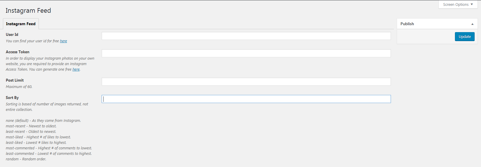 Just drop this file in the root of your wordpress theme. File Name: instagram-options.php