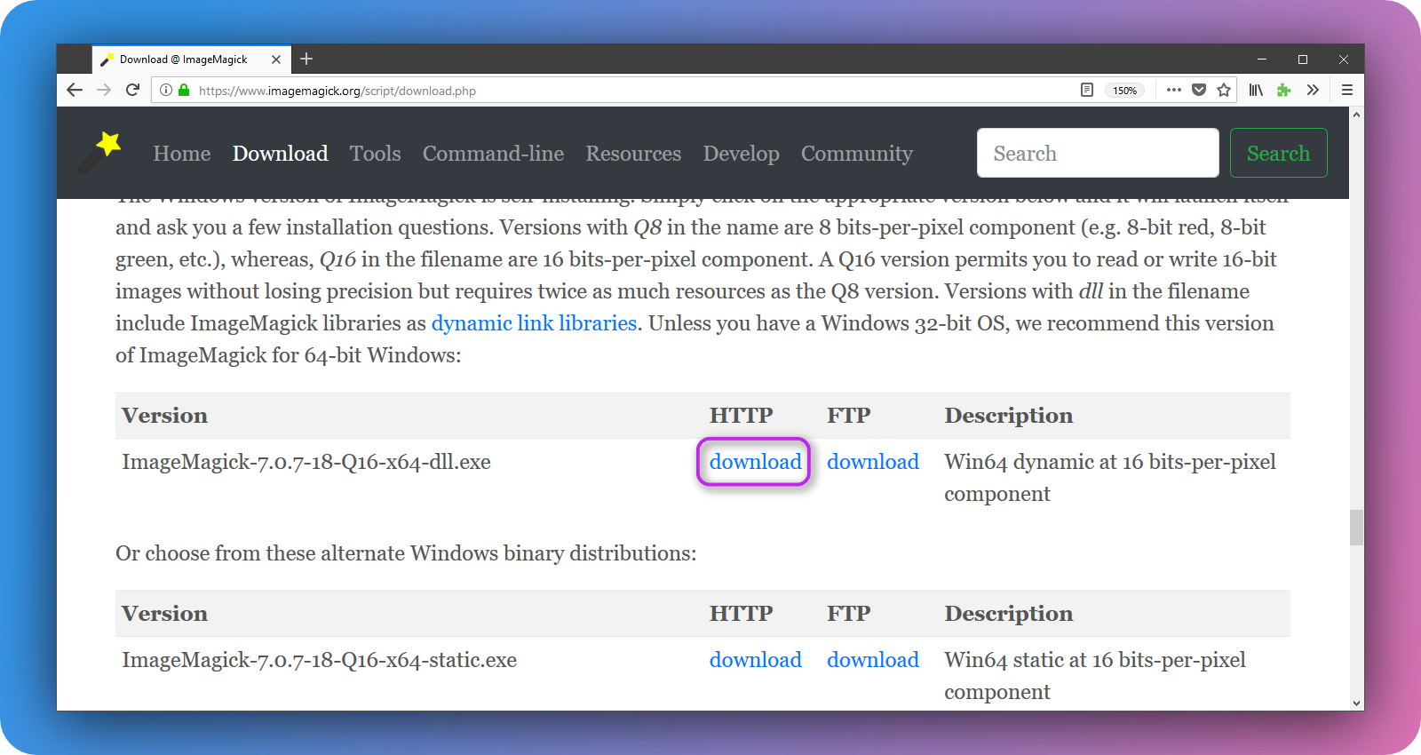 1. Download ImageMagick: https://www.imagemagick.org/script/download.php#windows