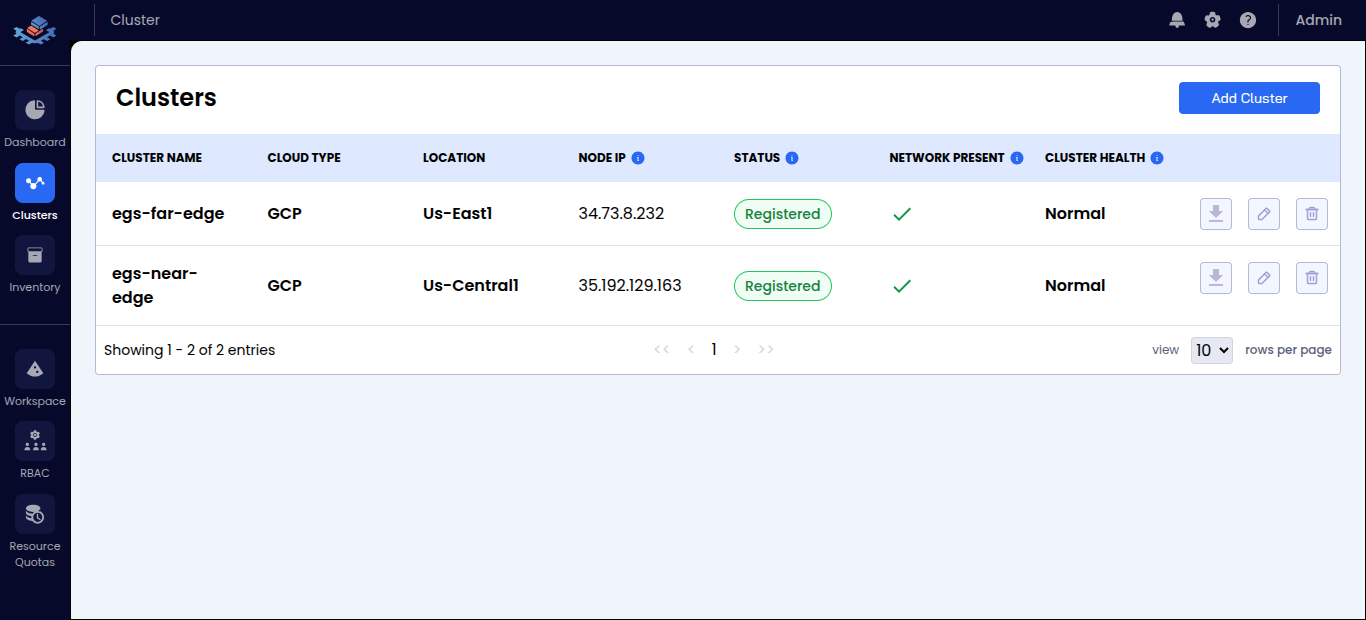 | π₯οΈ Clusters | Registered clusters with status and health | |