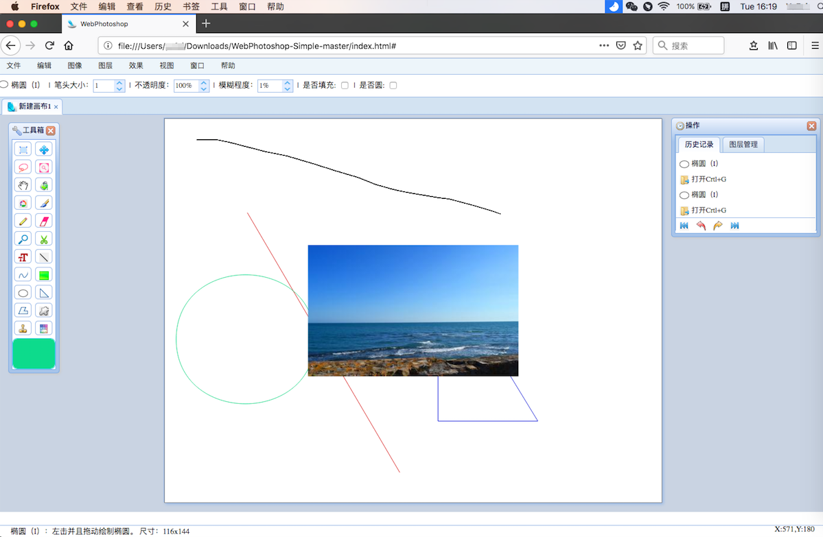 luhuiWebPhotoshop精简版是利用HTML5技术在Web上实现对图形图像的处理,构建易维护、易共享、易于拓展、实时性的Web图形图像处理平台。 精简版功能包括:图形绘制、图像处理、图像操作。完整版包括多人协作操作图像、实时交流、图片搜索,同时实现实时的多人协作处理图形图像技术。(完整版后续上传)
