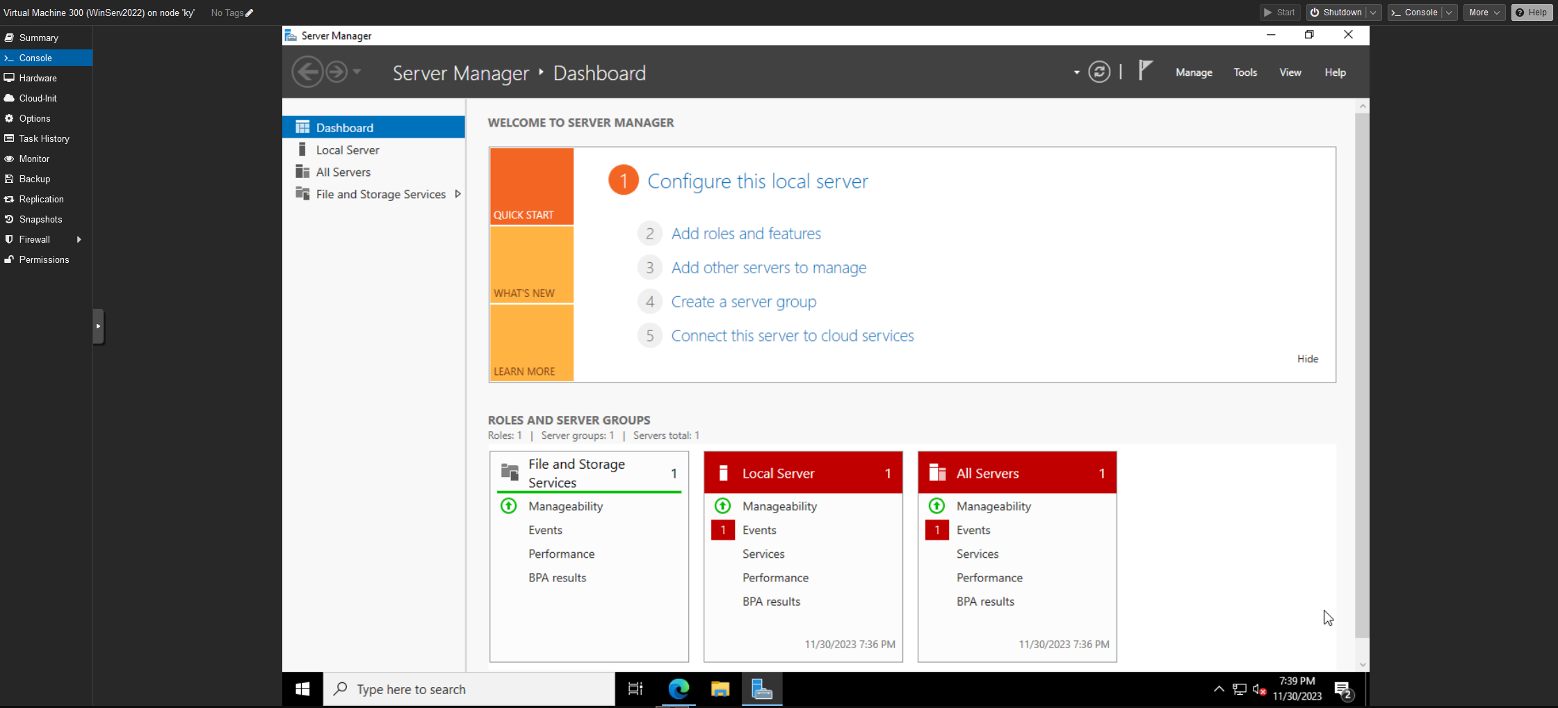 - After installation I now I had access to Windows Server Manager and able to access PfSense