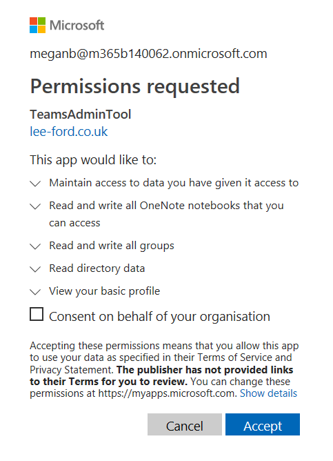 Note: Whilst there may be bugs with using the beta endpoint, in testing most functions work as expected (see Known Issues section), although being a beta this could change. If you are unsure of impact of the tool making changes to your Teams whilst it used beta endpoints - It is strongly advised you use the tool on some test Teams or a test Tenant.