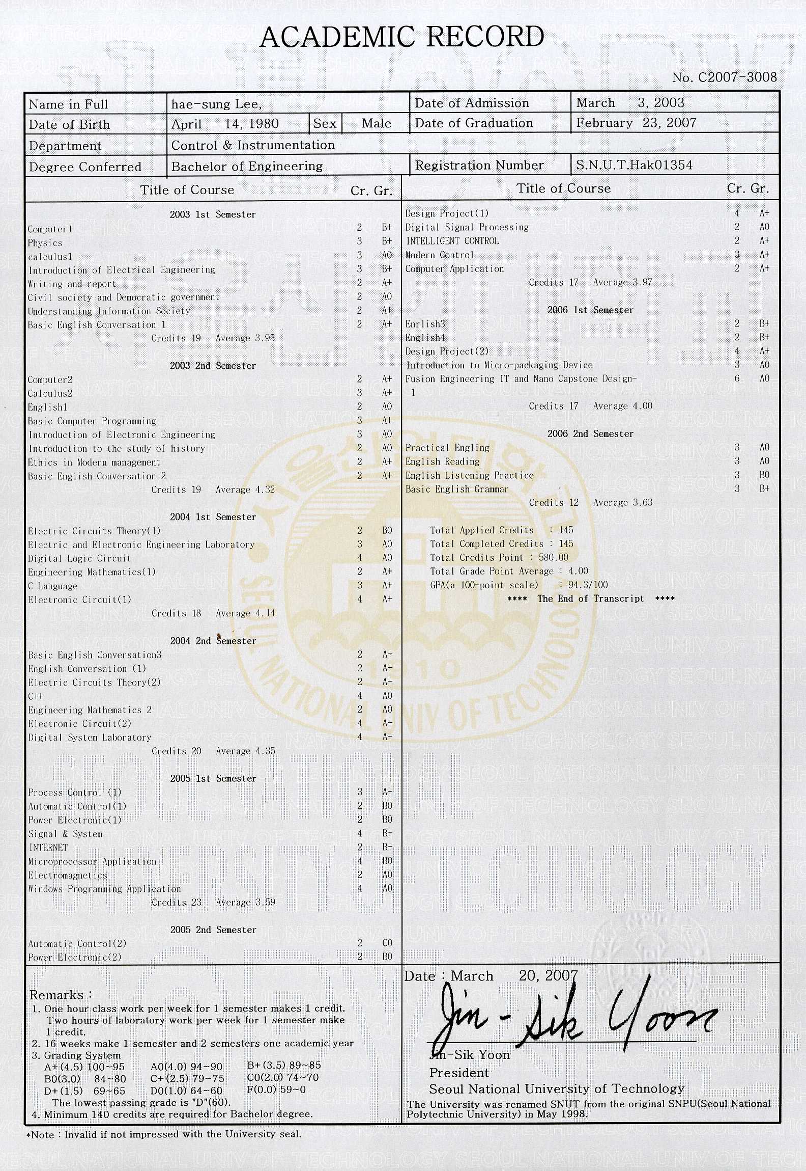 - Academic Record: Download JPG