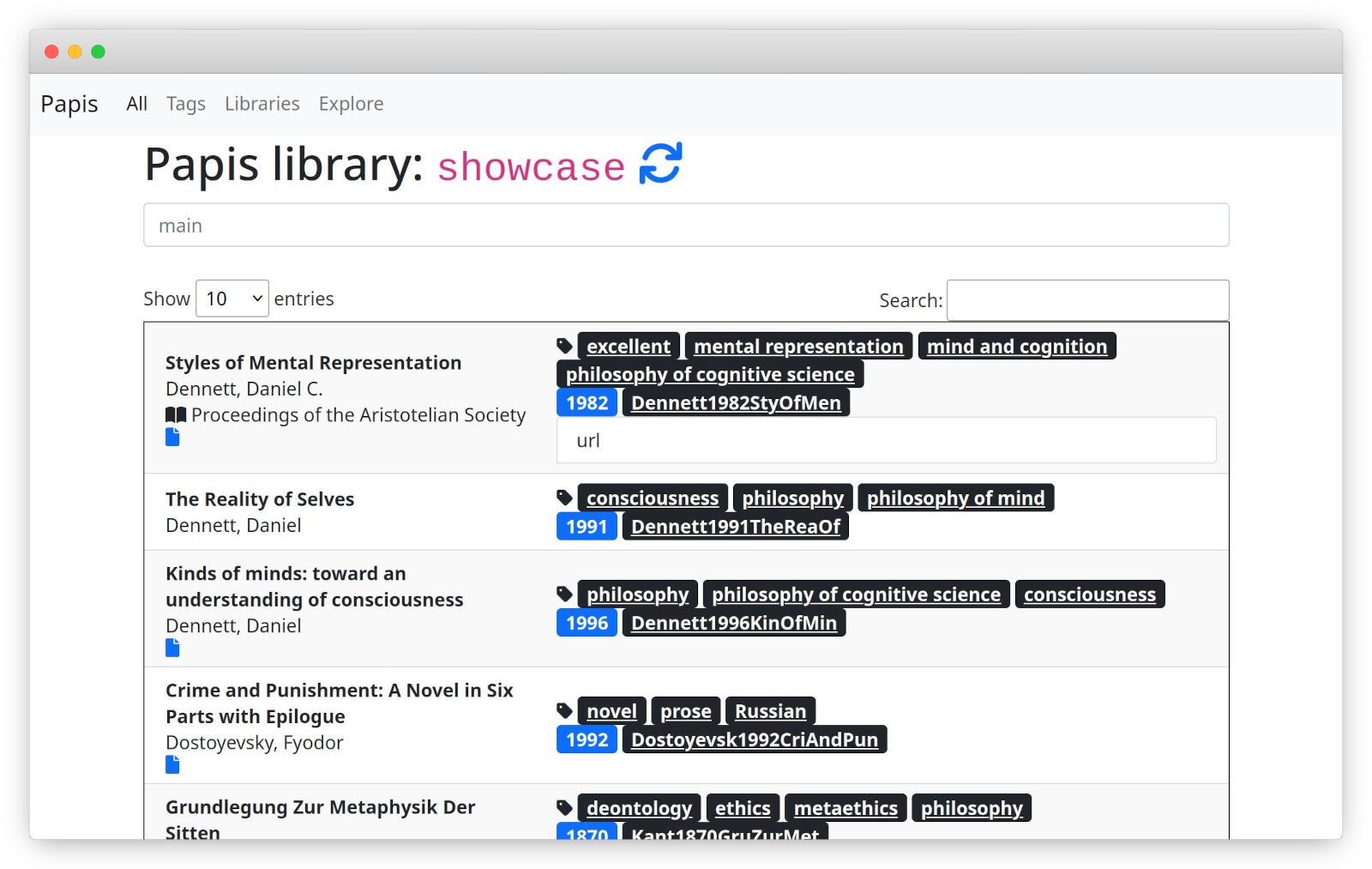 papis export --all --format bibtex > mylib.bibPapis also includes a web app that you can start with: