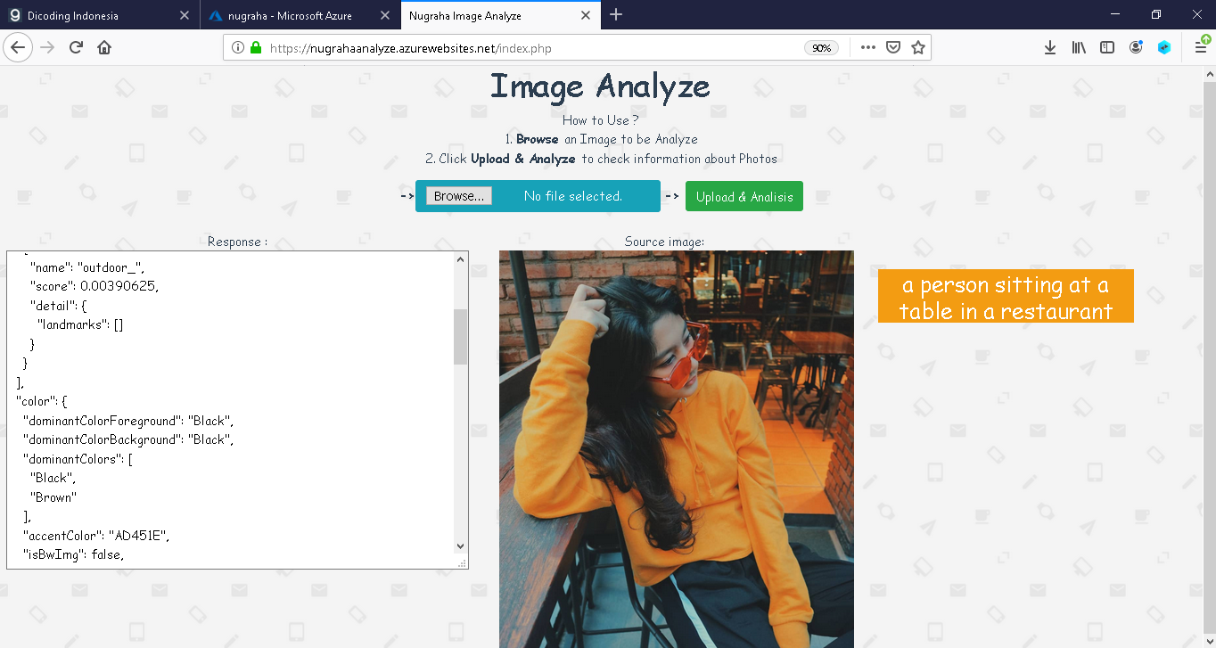 "# ImageAnalyzeAzure" Analyze image to see information about image. Final Submission Azure Cloud Developer from Dicoding.com Preview