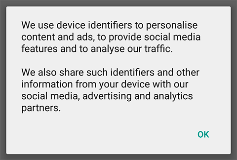 An Android library that displays to the user a dialog with the "cookie" message which is required by the EU laws.