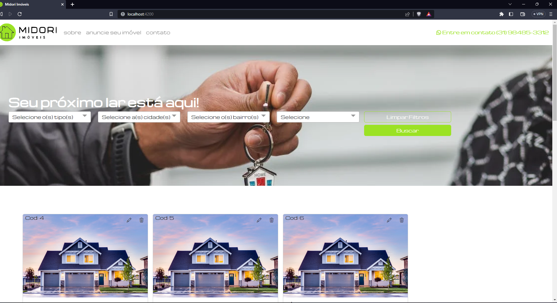 Este site é fictício do setor de imobiliária, onde o usuário pode criar, editar, deletar e ler as informações sore os anúncios.