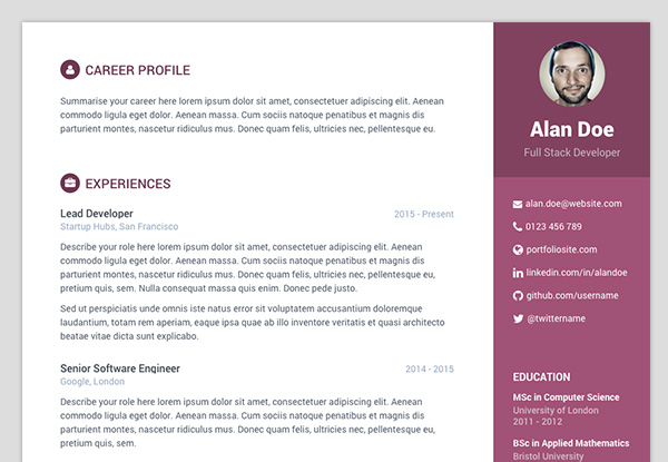 https://<username>.github.io/online-cv/; - Printable version of the site can be found at