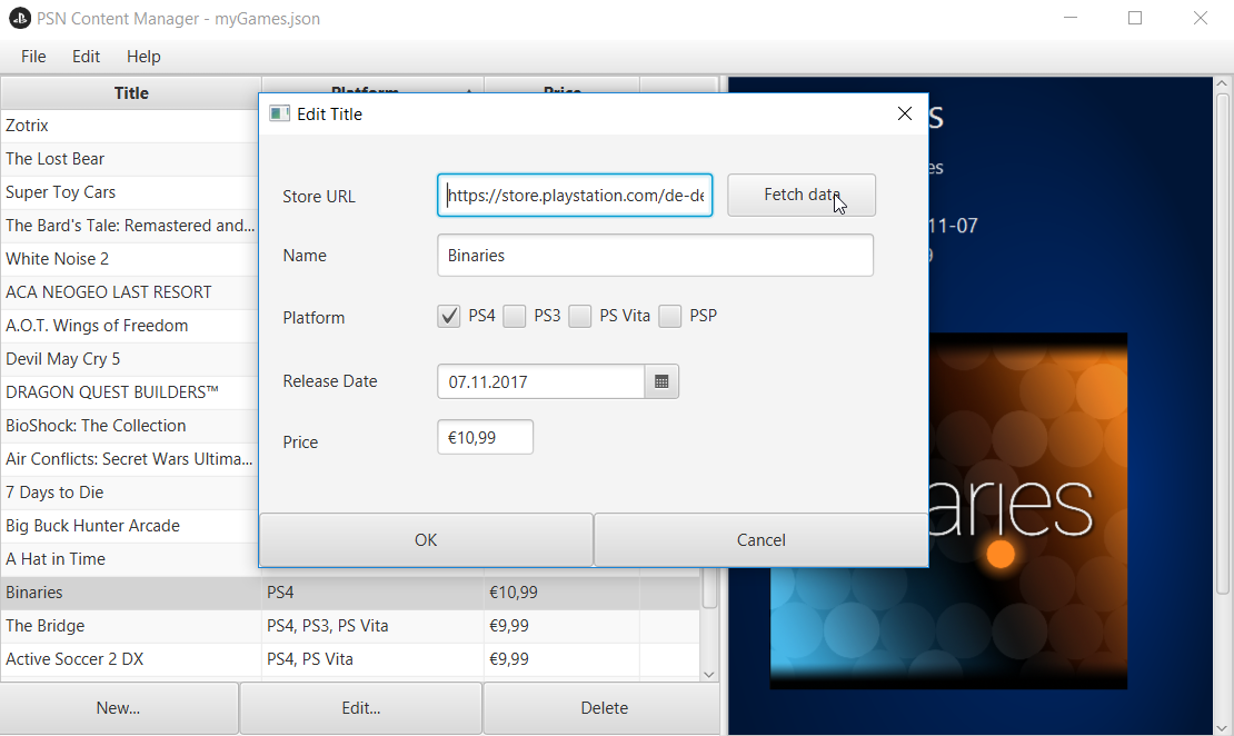 PSNStore-Content-Manager JavaFX application for managing bought PSN Store content. Add your titles either manually or by fetching data automatically by PSN Store URL.