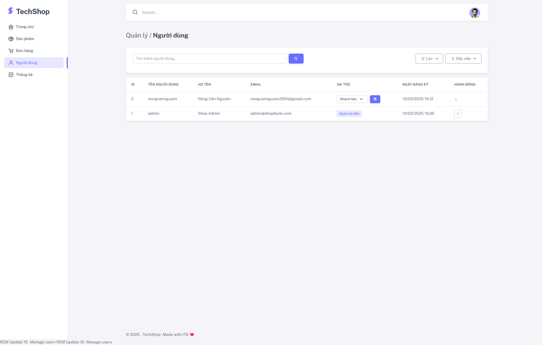 - Quản lý người dùng