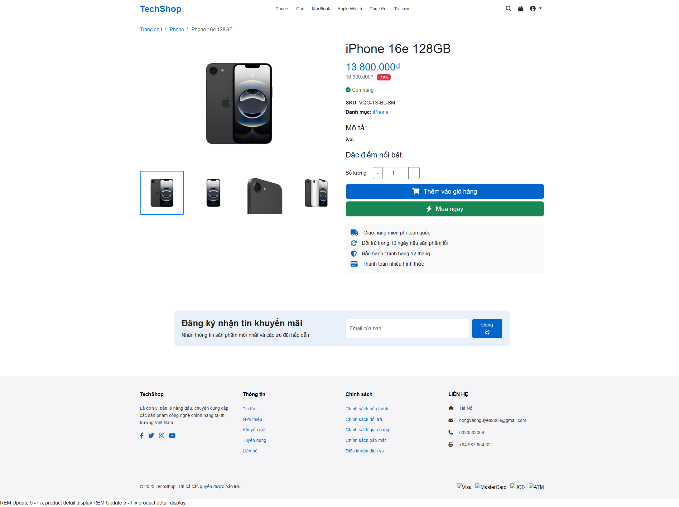 - Chi tiết sản phẩm với gallery ảnh