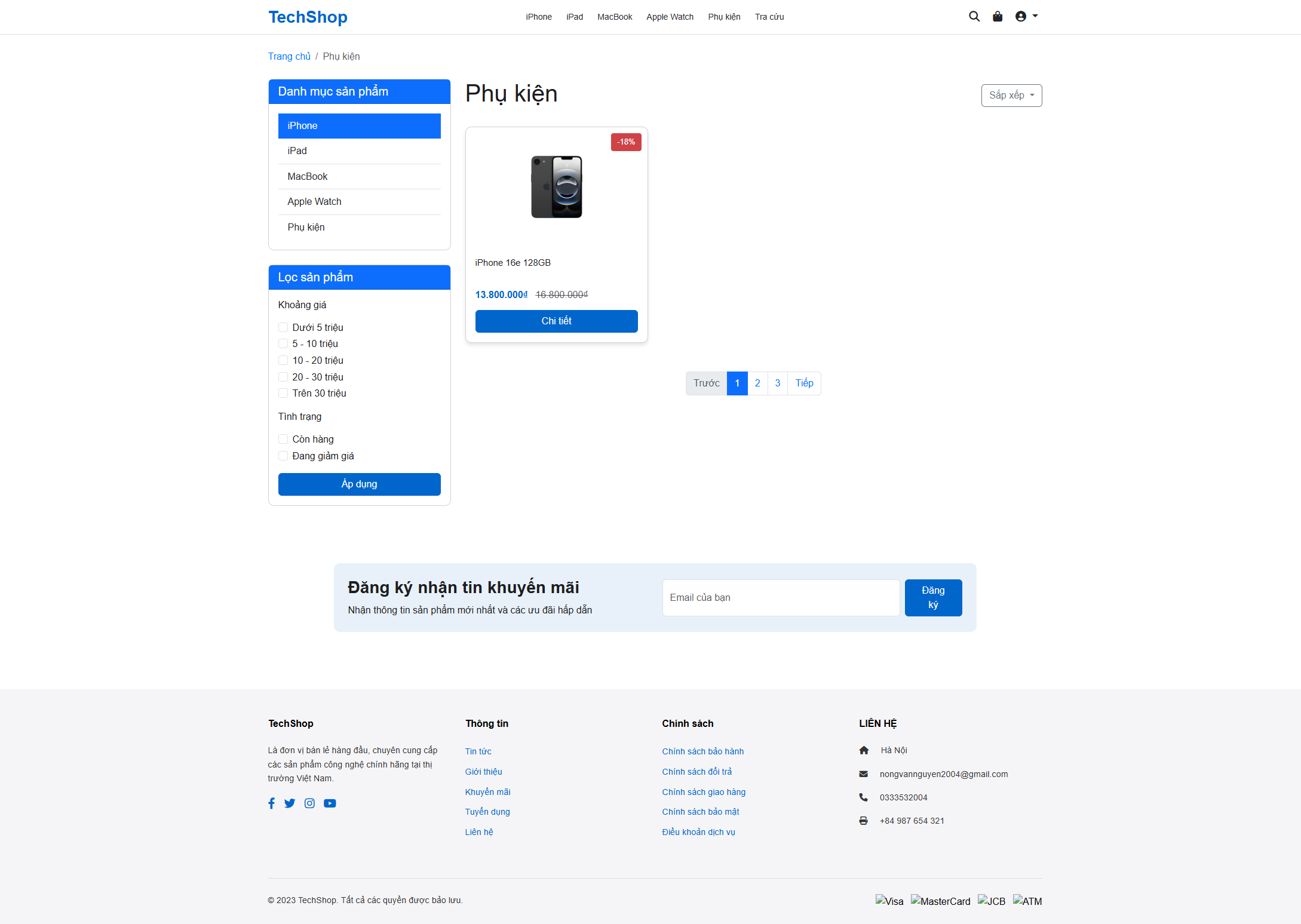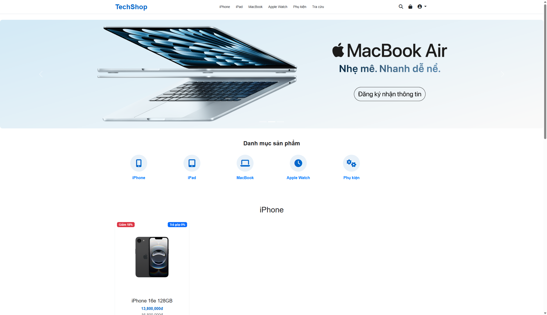 - Trang chủ đẹp mắt với banner slider và hiển thị sản phẩm theo danh mục
