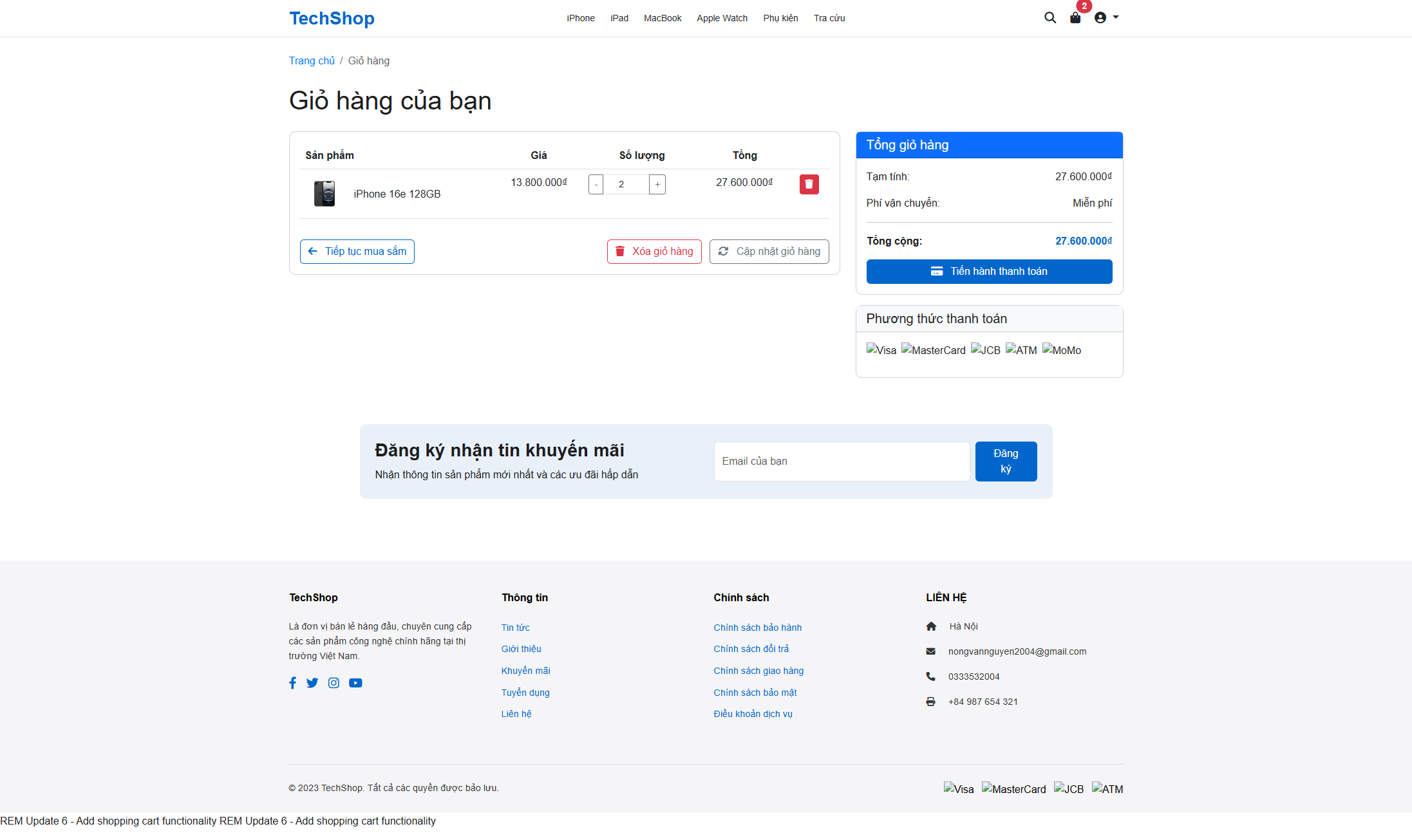 - Giỏ hàng và checkout
