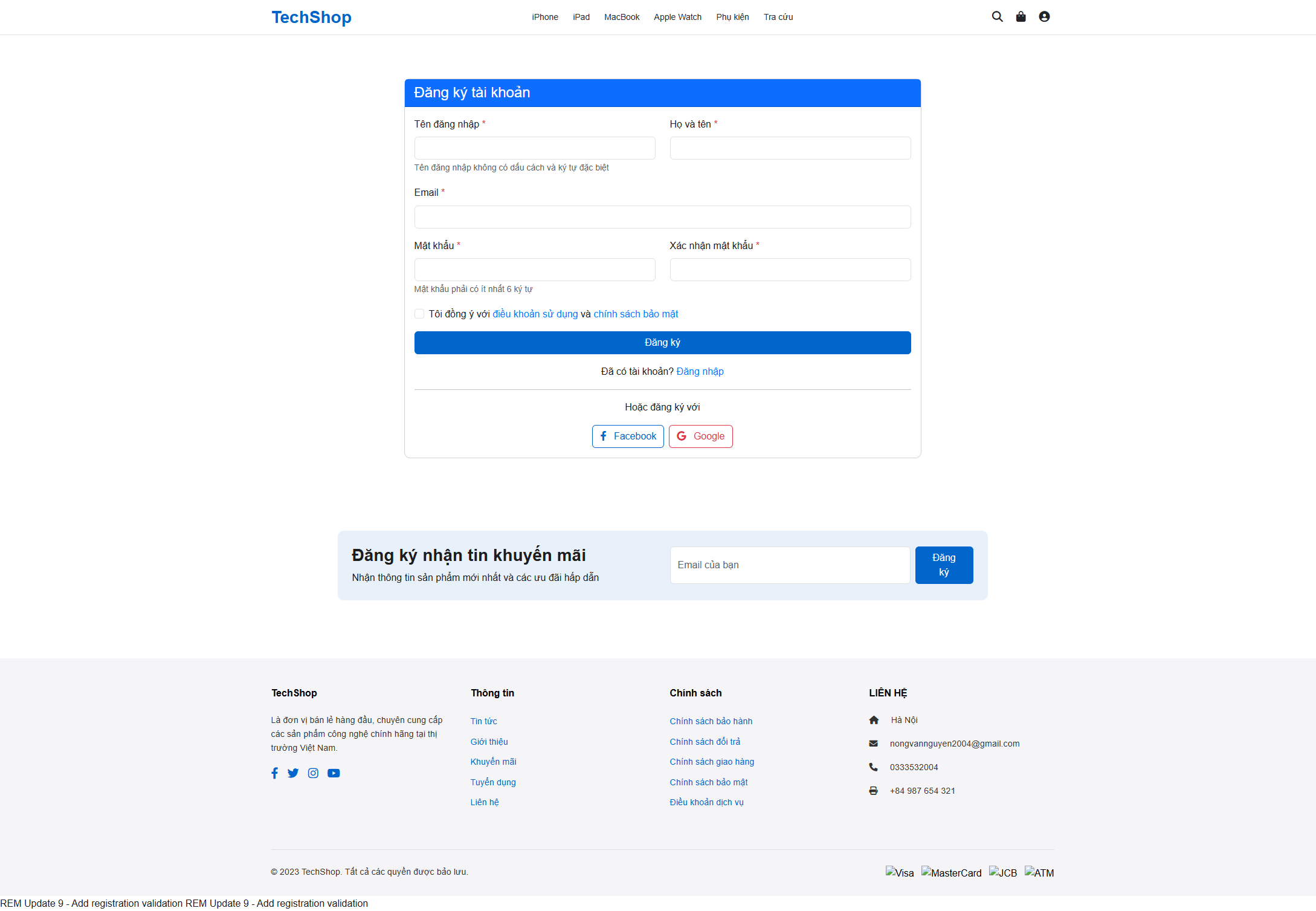 cd techshop- Tạo database mới: