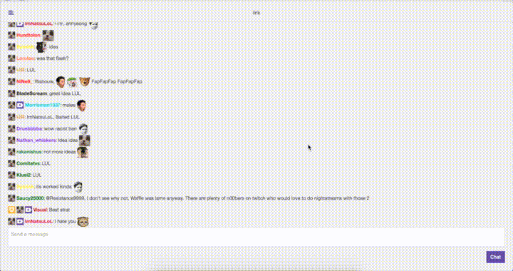 This project was done in order to test whether Elm can be used to replace certain well established pieces of Javascript. One of these is the Twitch chat. Recently, Twitch has upgraded their chat servers to also support WebSockets.