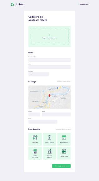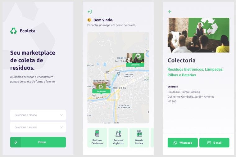 Projeto multiplataforma, web e mobile, desenvolvido durante a Next Level Week #1, promovida pela Rocketseat. Inspirado na semana do meio ambiente, o projeto tem por objetivo ajudar pessoas a encontrarem pontos de coleta de resíduos de forma eficiente. Foi desenvolvido um APIRestfull para alimentar os dados do front-end. A aplicação consome dados da API do IBGE para listar estados e cidades por estado, bem como consome a API do Leaflet para exibição do mapa.