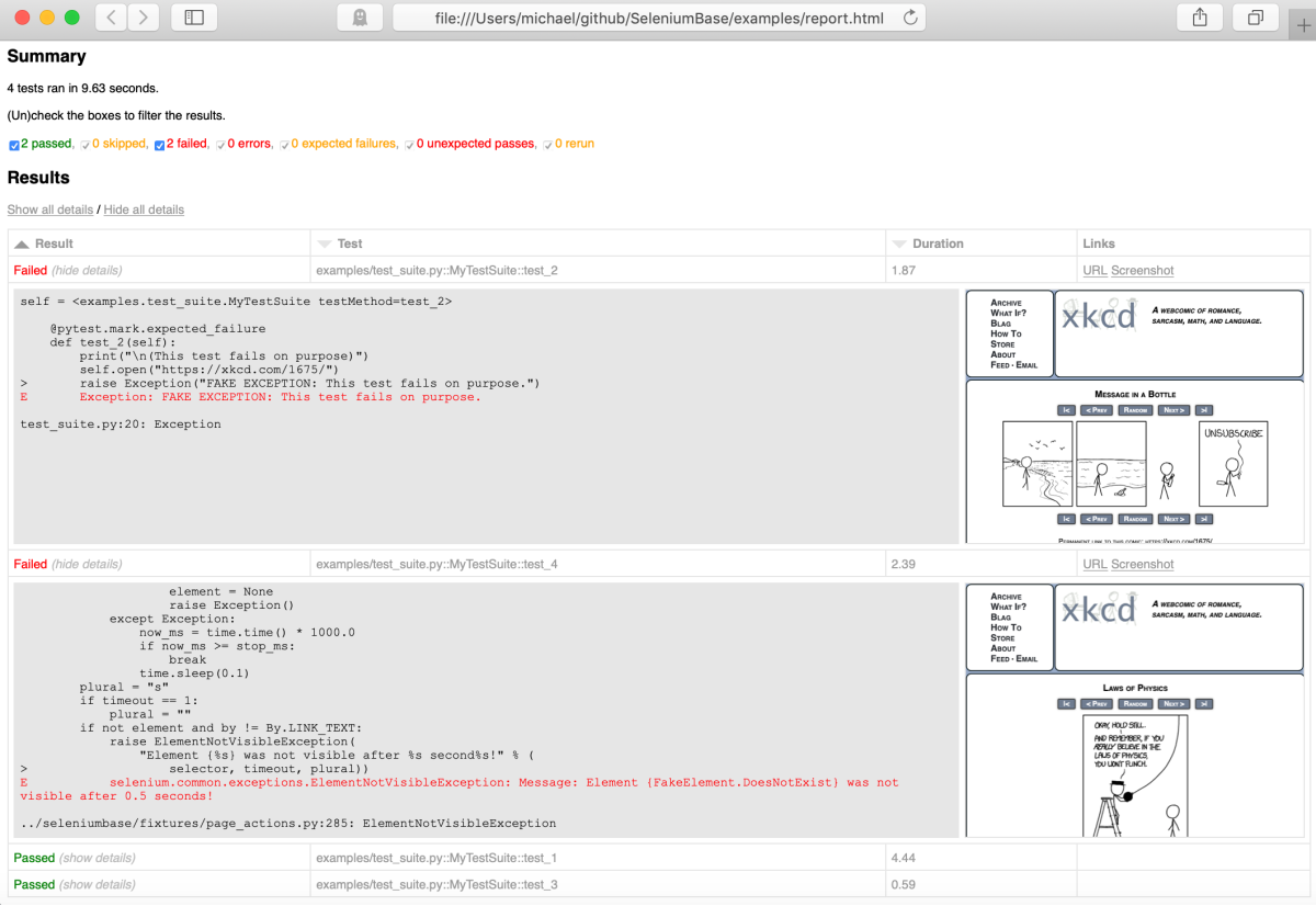 self.save_screenshot(FILE_NAME) # Save a screenshot of the current pageFor the complete list of SeleniumBase methods, see: Method Summary