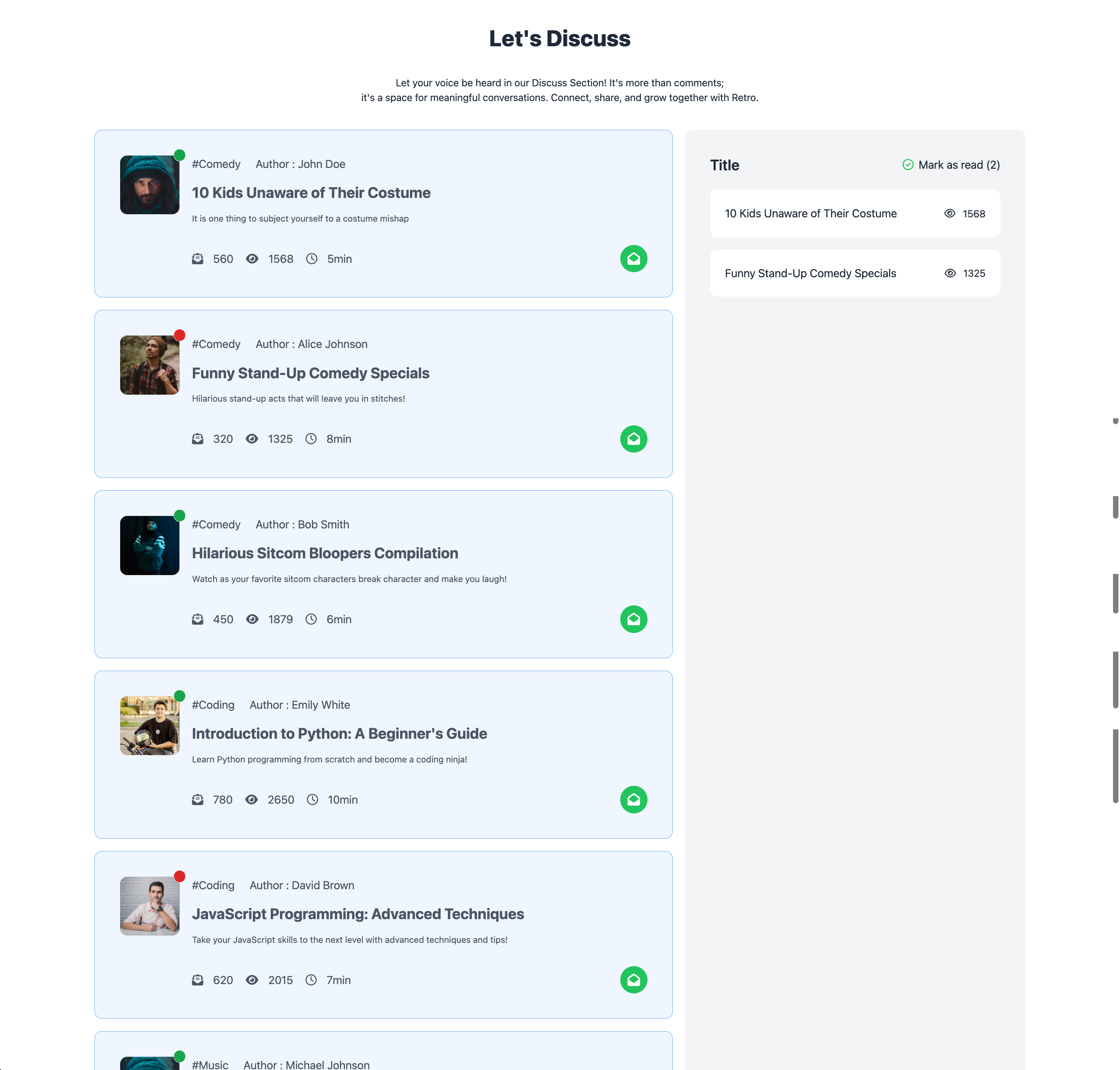 JSON Post Data: Utilizes JavaScript to fetch and display dynamic content from JSON data. Users can mark posts as read, updating the sidebar dynamically. See demo