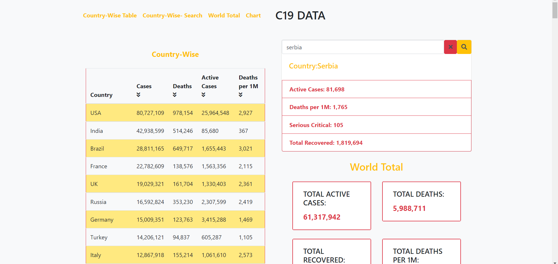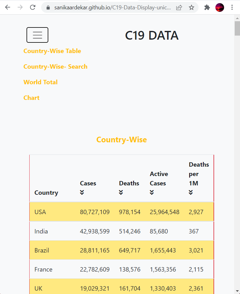 covid 19 data display using pure html and vanilla javascript