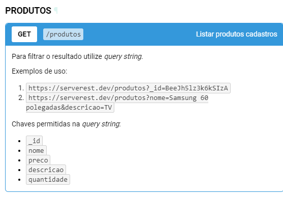 })Exemplo de uso de parâmetro QueryString com a requisição Get Produtos: