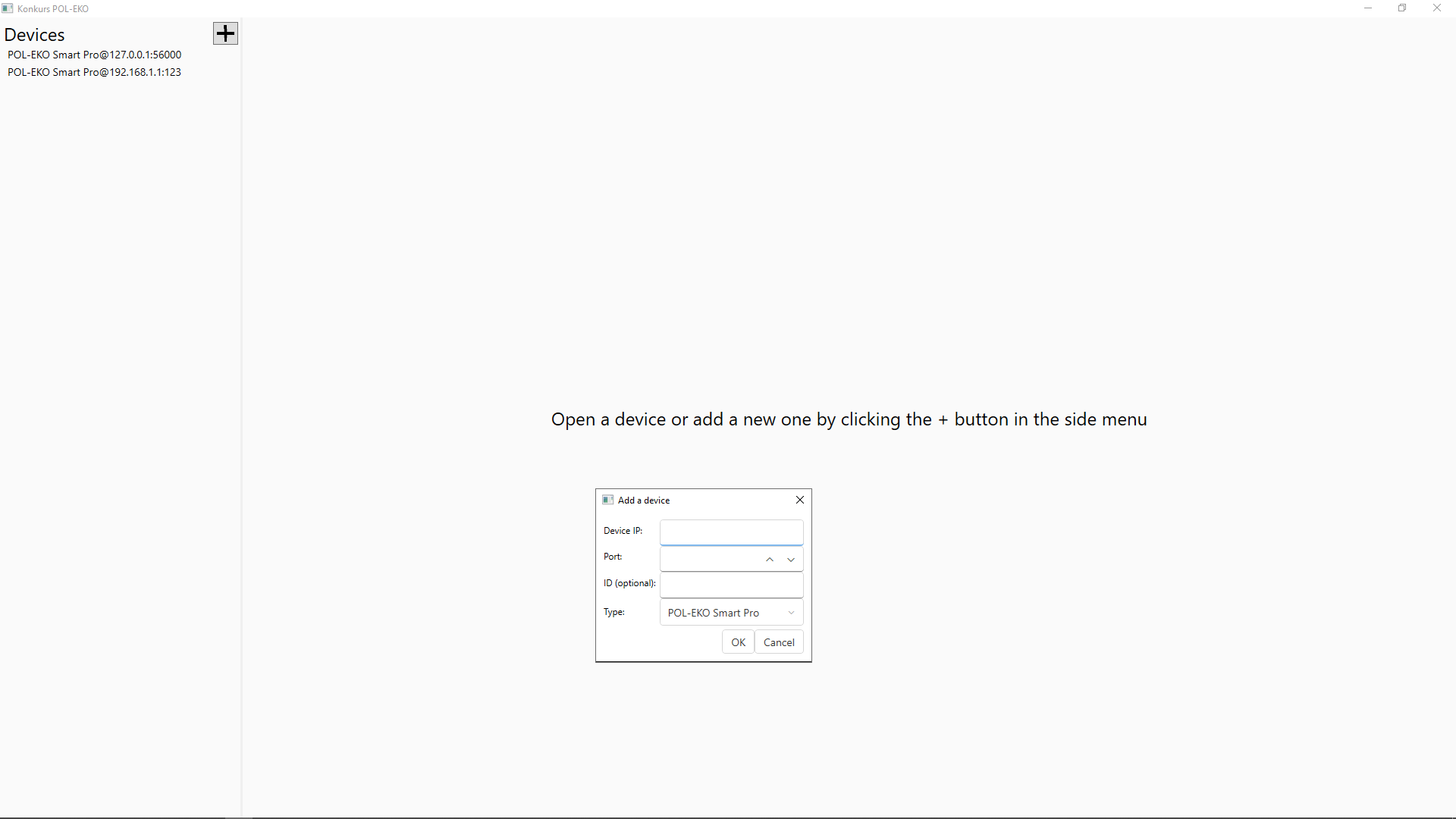 To add a device in the monitoring app, just press the + icon in the Devices panel and enter its details