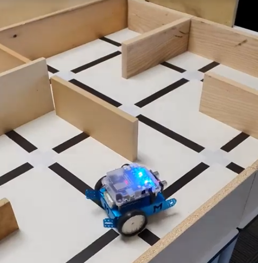 Robot navigates a maze. Uses a left-first approach to get to the exit. The robot saves the path to the exit and does not save dead-ends. The robot is able to traverse the maze using this saved data.