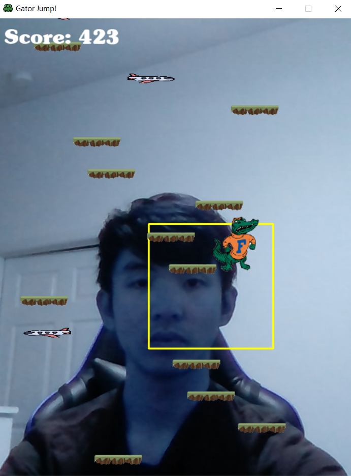 Gator Jump! is similar to the classic mobile game "Doodle Jump", but we have a more advanced game control that brings more fun and excitement than any other ordinary game. You will need a WebCam to play in our Facial Control Mode because we are using Facial Detection! You will be able to control your character's fate by moving your face alone with him! Come check it out!